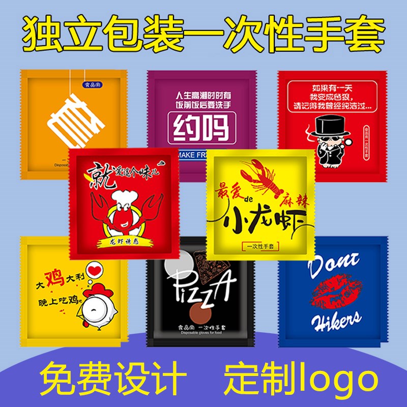 独立包装一次性手套加厚创意食品餐饮薄膜PE外卖龙虾披萨定制logo热门设计联盟服务商