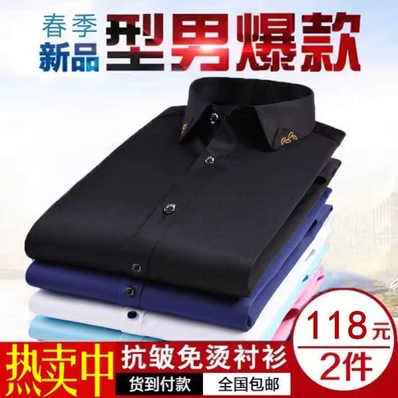 买一送一HNB春季刺绣长袖衬衣男士免烫抗皱商务休闲衬衫侨之声服热门设计联盟服务商