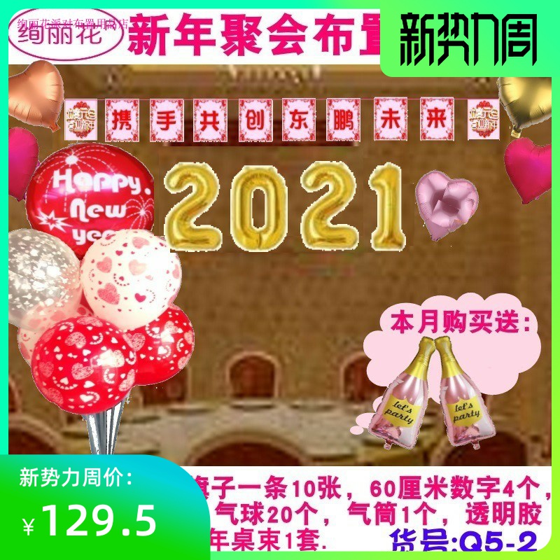 2021元旦气球布置新年装饰香槟字母气球订制中文旗子横幅热门设计联盟服务商