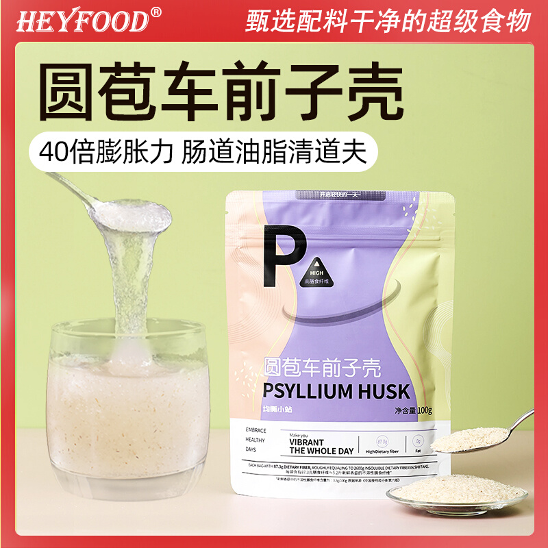 Heyfood圆苞洋车前子壳0脂膳食纤维生酮低碳烘焙包装冲泡营养代餐热门设计联盟服务商