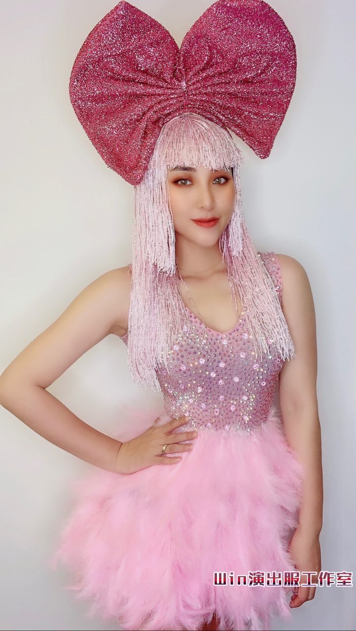 Win演出服粉钻羽毛ds夜店酒吧女歌手dj爵士舞时尚大气新款热门设计联盟服务商