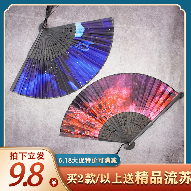 毛刺下单先看详情页易开合古风绸布小号折扇竹制汉服女配饰绢布扇热门设计联盟服务商